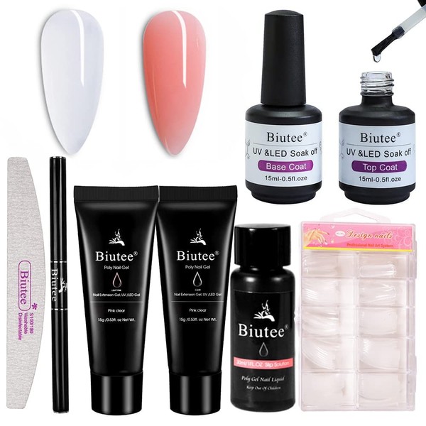Biutee 6-Piece Gel Nail Set, Polygel, UV/LED Compatible, Length Tip, Easy to Length