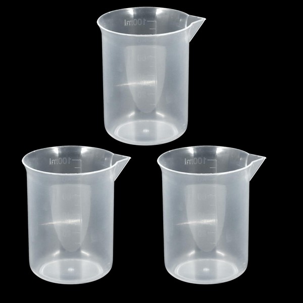 Bivethoi 3 Pack Plastic Beakers, Low Form Graduated Measuring Beakers 50ML Graduation Interval (Vol. 100ML)
