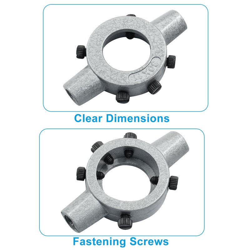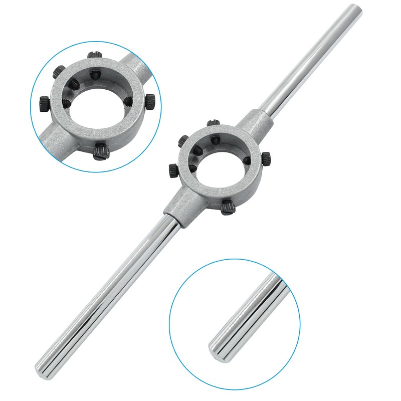 - Easy to Operate: Fix the round dies with 4 adjustable screws. Easily lock the dies in place. You can also choose to remove one or two handles to facilitate installation.The positioning groove of the die (not included) should be aligned with the fastening screw in the middle of the die wrench, and the screws should be inserted into the slot of the die and tightened.