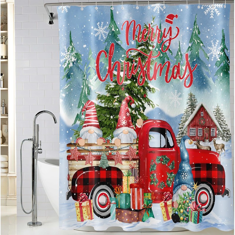 - 🎄Rustproof Hooks: 12 plastic hooks are convenient to install the Xmas Truck bathroom curtain, and suitable for all kinds of size of bathroom.