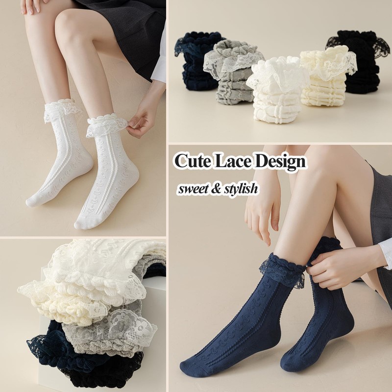 - [Lace Ruffle Design]:Ruffle socks for women are designed with lace cuffs, which are more cute and special when worn on the feet. The fashionable and exquisite ruffled lace socks highlight your sweet and lovely style.