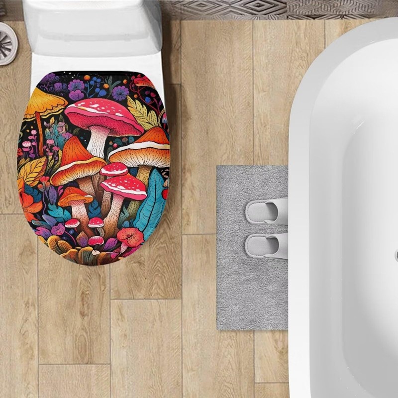Bivxisrvo Cartoon Mushroom Print Toilet Cover Seat Polyester Fabric Toilet Protector Cover Dustproof Elastic Edges Toilet Seat Cover Universal for Most Toilet Bowl Lids