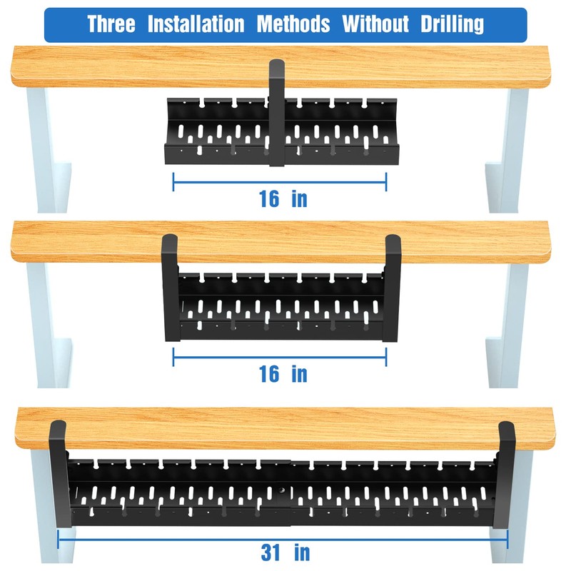- NO DRILL & EASY TO INSTALL: Instead Of Damaging Your Desk With Screws, Our Under Desk Cable Management Tray Can Be Hanged Directly To Desk With Clamp, And Easily Change Its Location As Needed, Easy To Install Without Instructions, Make Your Management Plan Burdenless
