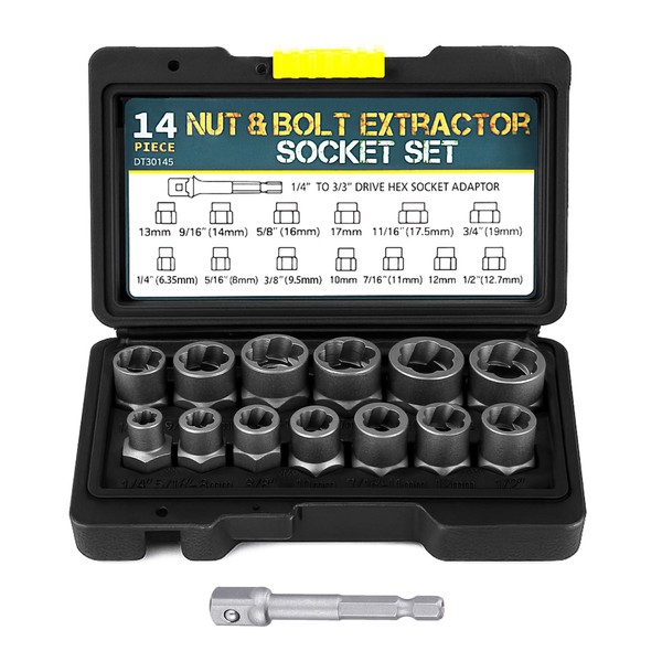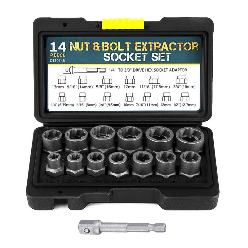 Bixury 14-Piece Nut Remover Set 3/8 Inch Nut Socket Set Wheel Nut Remover wit...