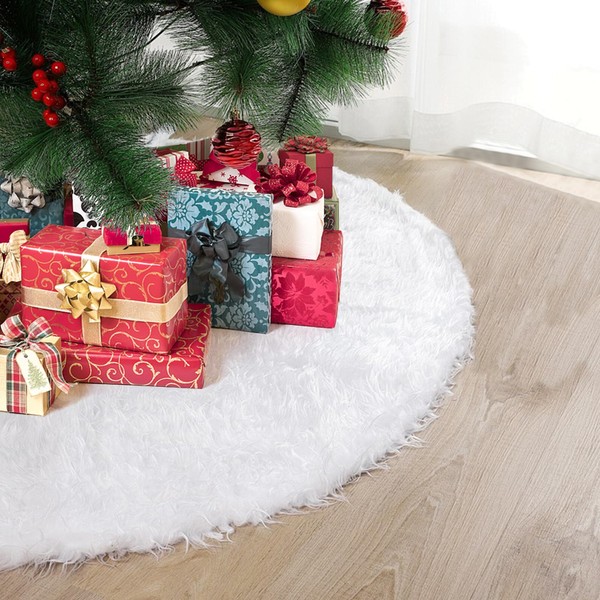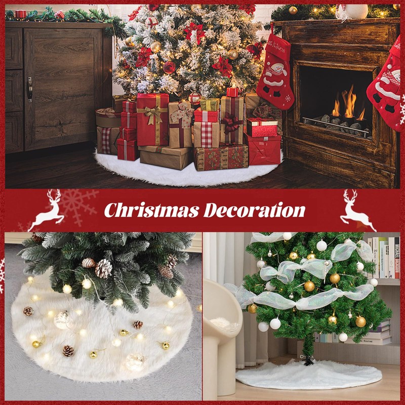• Reusable: the white, furry Christmas tree skirt is designed for durability. You can also use it as a home rug and kitchen apron after Christmas, or fold it up and put it back next year. Plush and soft, it is also popular with winter pets