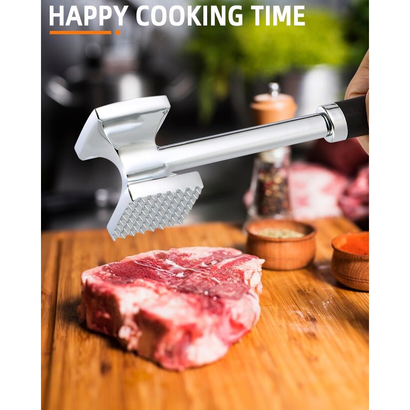 - Ergonomisches Design: Der Fleischklopfer hat einen rutschfesten Griff, und der Fleischklopfer ist mit 250 g leicht und liegt angenehm in der Hand. Die Hammerfläche hat einen Durchmesser von 4,7 cm und eine Gesamtlänge von 27 cm und ist perfekt für schmackhafte Speisen