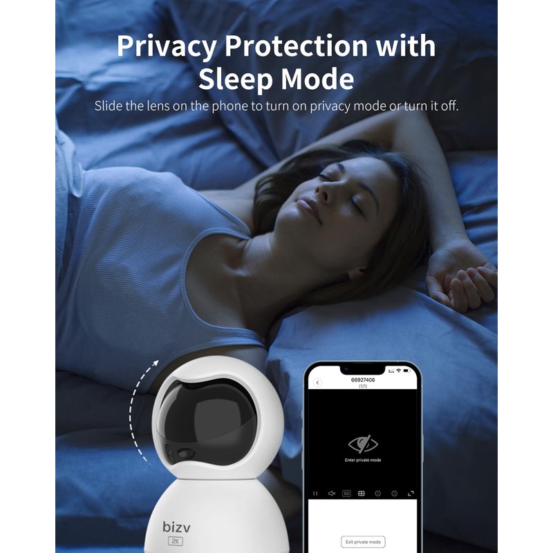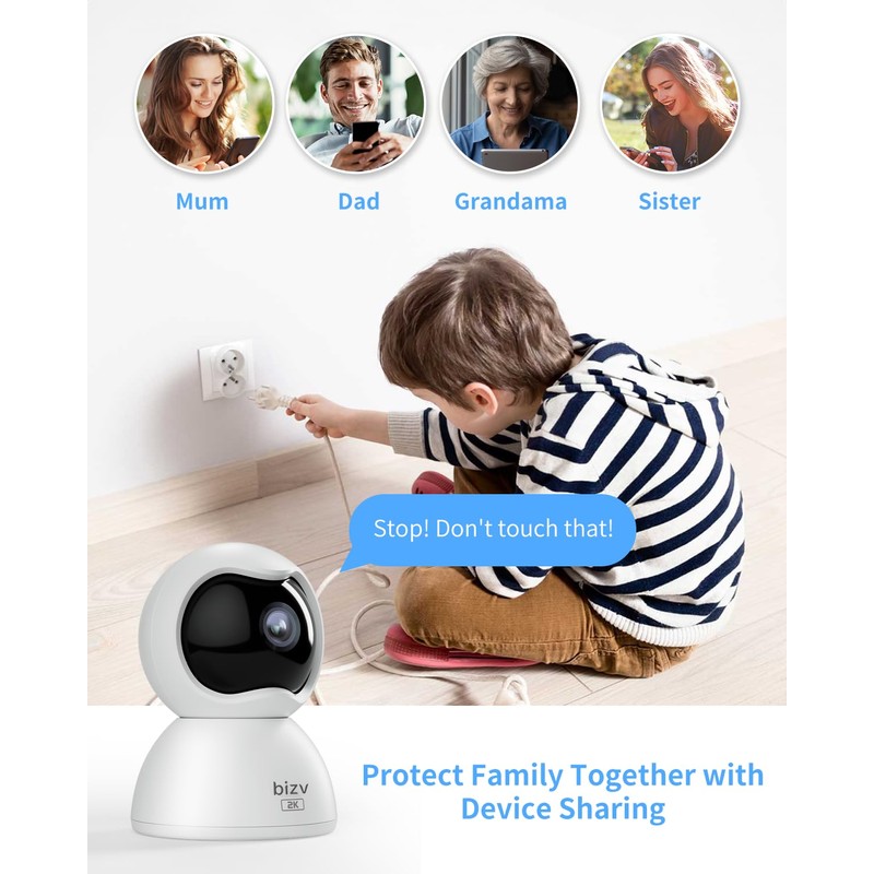 bizv 2K FHD Indoor Security Camera,2.4G WiFi Pet Camera with Phone App,Home Security Camera for Dog/Baby Monitor/Elder Pan Tilt 24/7, 2-Way Talk, Human Detection, Motion Tracking, SD&Clould