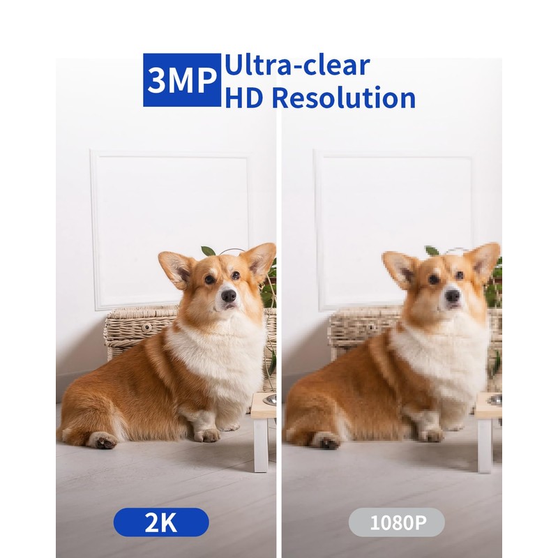 - 【3MP & Pan/Tilt indoor camera 】The indoor camera is a wireless security camera with a 3MP HD pixel resolution, ensuring high-quality images with clearer details. It can rotate 355° horizontally and 75° vertically, making it a versatile choice for home surveillance.