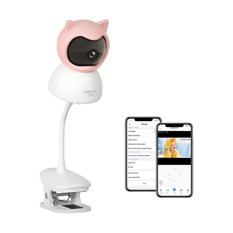 Bizv 2K Video Baby Monitor with Holder Attaches to Crib Cot Shelves, 360° Camera with Night Light, Phone App Control,WiFi Camera with Auto Tracking, AI Motion & Sound Detection & 2-Way Audio(Pink)