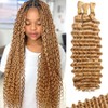 BIZVUS Bizvus 24inch Human Braiding Hair for Boho Braids 110g Deep Wave Boho Bulk Human Hair for Braiding Knotless 12A Wet and Wavy Bulk Bohemian Curly 3 Bundles/Pack #27 Honey Blonde Color