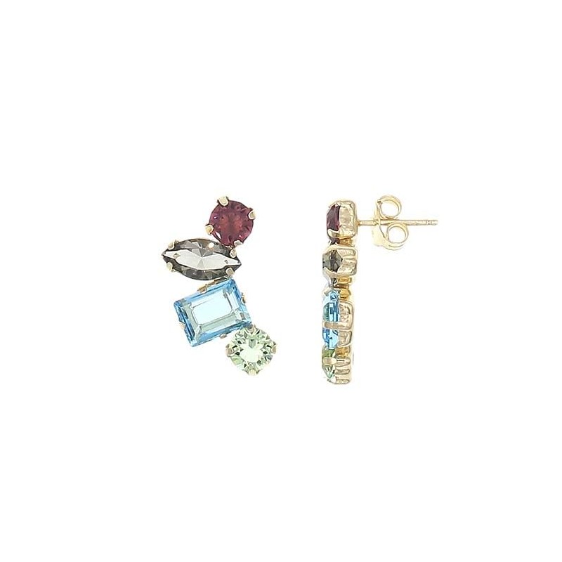 BIZZARRO Aretes De Plata Dorada Con Piedras De Colores Modelo SIL-232-A