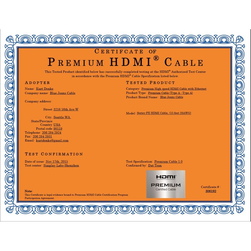 La versión HDMI 2.0 aumentó el ancho de banda de HDMI a un máximo de 18 Gbps, para permitir vídeo 4K de alta frecuencia. Las pruebas convencionales de alta velocidad, sin embargo, prueban cables solo a 10.2 Gbps; las nuevas pruebas de certificación de cable HDMI de alta calidad de la licencia HDMI llegaron hasta el límite de 18 Gbps, y Blue Jeans Cable fue uno de los primeros fabricantes de cables para cumplir con este exigente estándar.
