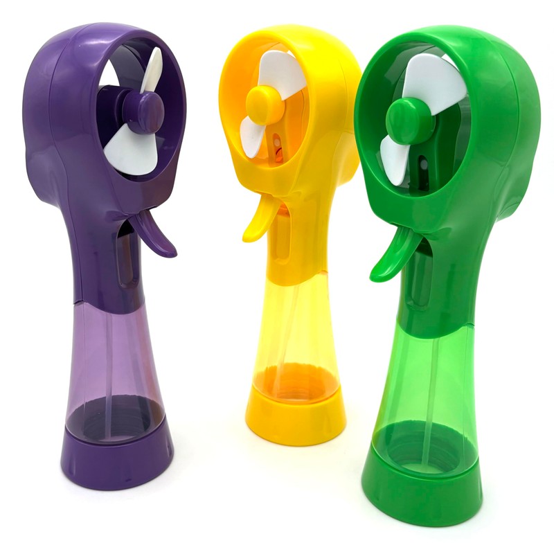 BJPEY Handheld Misting Fan with Spray Function - Portable Battery Operated Personal Cooling Fans for Travel, Beach, Camping (Yellow+Purple+Green)