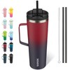 BJPKPK Insulated Tumbler with Handle, 30oz Insulated Tumblers with Lid and Straw, Stainless Steel Metal Water Bottles, Coffee Travel Mugs, Cups, Charming Red