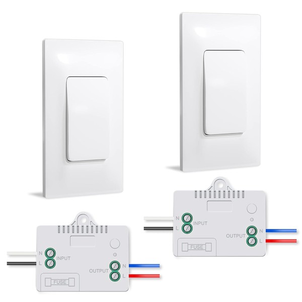 - 【Waterproof & Widely Applications】Our wireless switch and receiver works great in wet environments like bathroom and courtyard, no electric leakage probable. Remotely turn on/off indoor lighting fixtures, ceiling lights, plug-in pendant, lamps, hard-to-reach lights, and other electric appliances with a push of your wall switch.