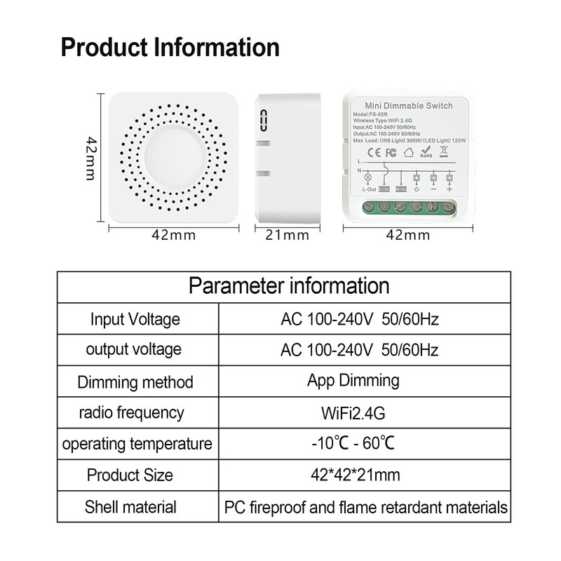 - Bkiyougo Smart Dimmer Switches a Wi-Fi operated smart switch relay with 1 channel with dimming function, Mini and Compact With a super slim size at just 42*42*21mm, this dimmer fits into any standard switch box for fuss-free retrofit installation.
