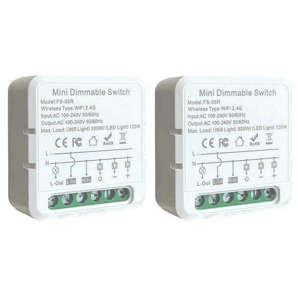 Bkiyougo Smart Dimmer Switch, Dimmer Smart Relay, Compatible with Alexa and Google Home Smart Speakers Smart Life/Tuya App, Mini Smart Light Switch Module as Home Assistant, No Hub Required (2 Pack)