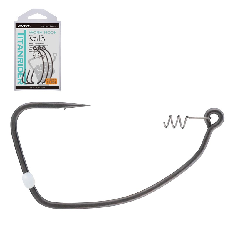 BKK TITANRIDER Soft Plastic Hook | 5/0 | 3-Pack | 2X | Needle Hook Point| Super Slide Coating | Locking Spring | Weedless Swimbait Hook