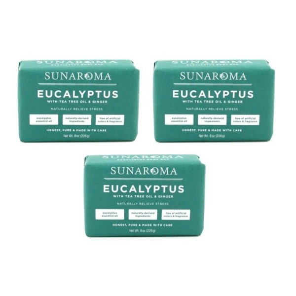 BL Sunaroma Soap Bar Eucalyptus With Tea Tree + Ginger 8oz X 3 Counts