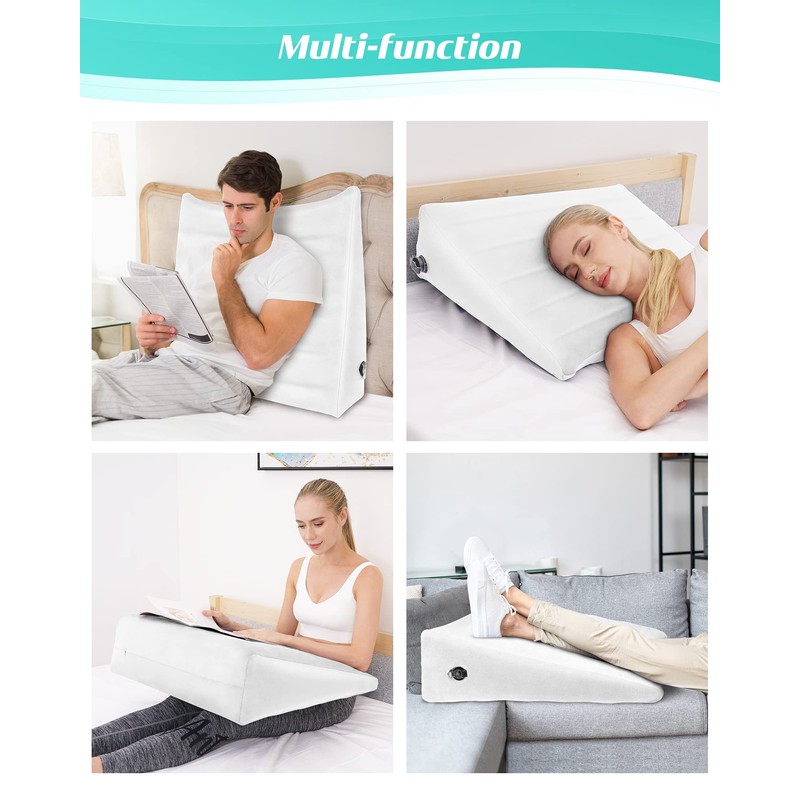 - 【Health benefits】/*Please do not fully inflate. Inflating up to 80% will give you the best experience.*/The Wedge Pillow provides a natural solution for respiratory issues, chronic heartburn, acid reflux, and snoring. It promotes better breathing and reduces pressure on the lower esophageal sphincter, minimizing discomfort and improving sleep quality.