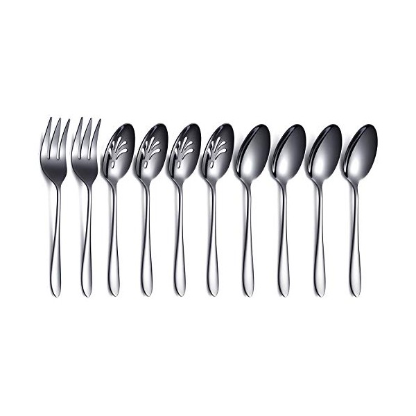 - 【10-Piece Black Serving Set】Include Slotted Serving Spoon x 4, Serving Spoon x 4, Serving Fork x 2;