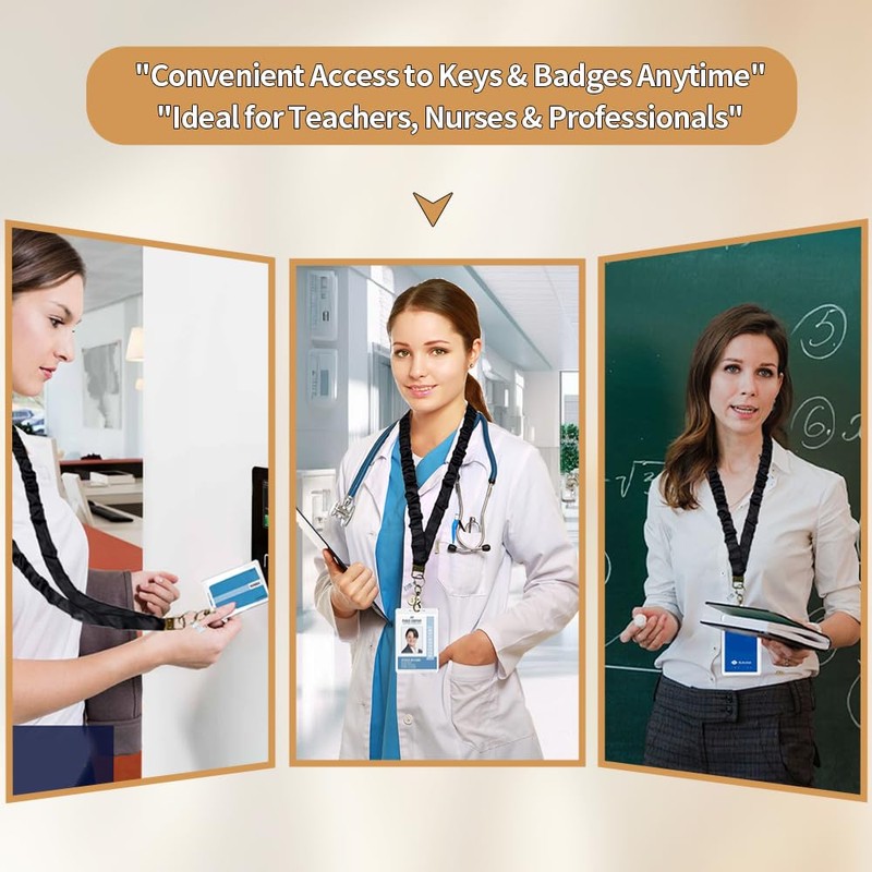 - Convenient Use, Access Keys or Badges Anytime With this long black Scrunchie Lanyard, you can easily access keys, badges, or phones without having to remove it. It’s the perfect accessory for busy professionals, including teachers and nurses, enhancing convenience and efficiency in everyday tasks.
