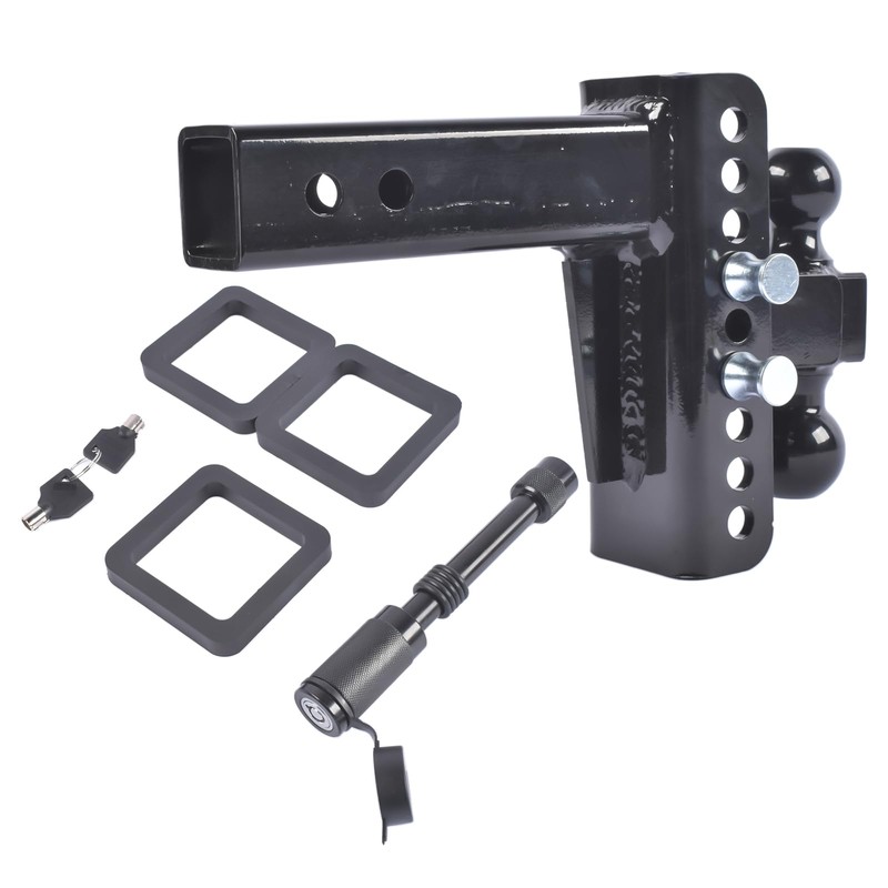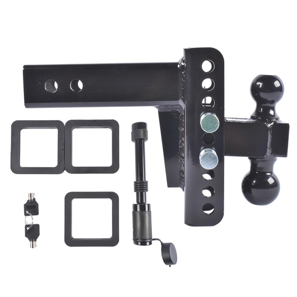 - 6" Drop/Rise Adjustable Ball Mount: Integrated hitch balls allow for supreme towing, while 6" drop/rise hitches offer flexible adjustment, adjusts in 1" increments so you get the perfect fit for any trailer height, with no need to change hitches for different vehicles.