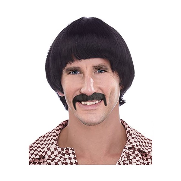 This 60's hippie wig and mustache set is the ideal addition to all your favorite costume ideas. Makes for a fun addition to any hippie costume for men. Also can be worn as a Sonny Wig and Mustache set, Burt Reynolds Costume, Bob Belcher Costume or any character that needs a black wig and black mustache.
