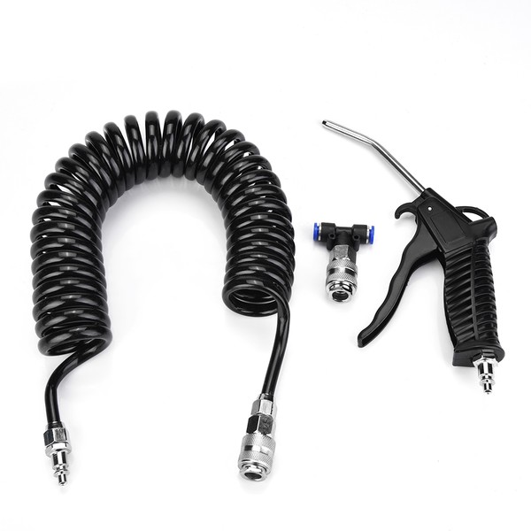 Black Air Duster Gun Pneumatic Wind Blowing Kit Set with Small Connector PU Hose
