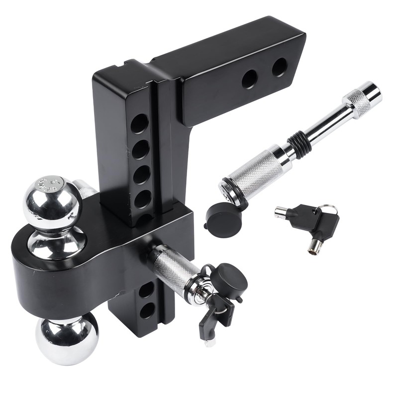 Black Aluminum Adjustable Trailer Hitch Replacement for Solid Tube Hitch -12,500 LBS, 2 and 2-5/16 inch Balls, 2-inch Receiver, 8 Inch Drop/Rise Lamerto