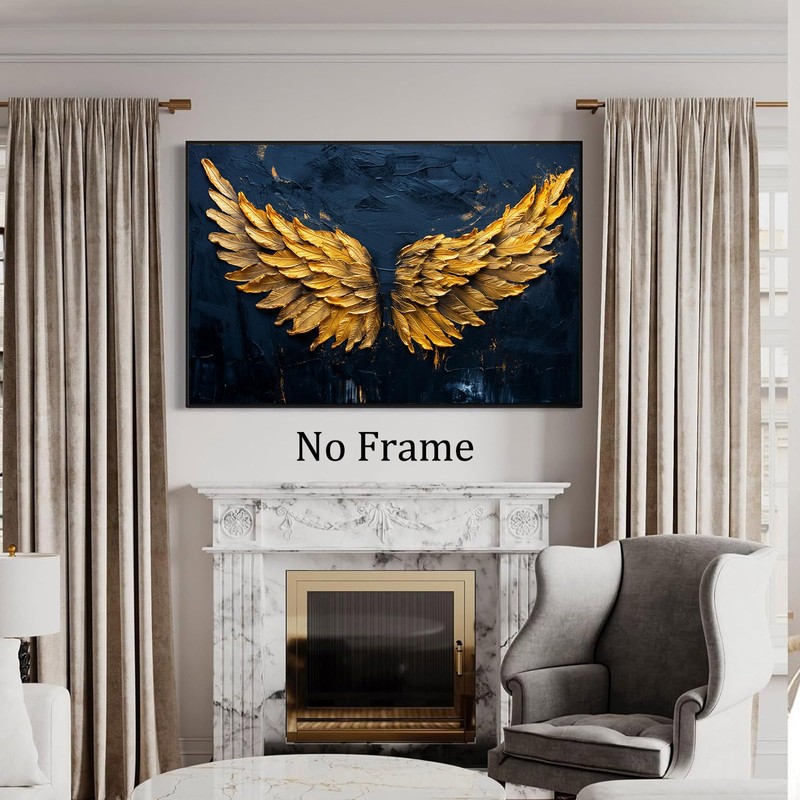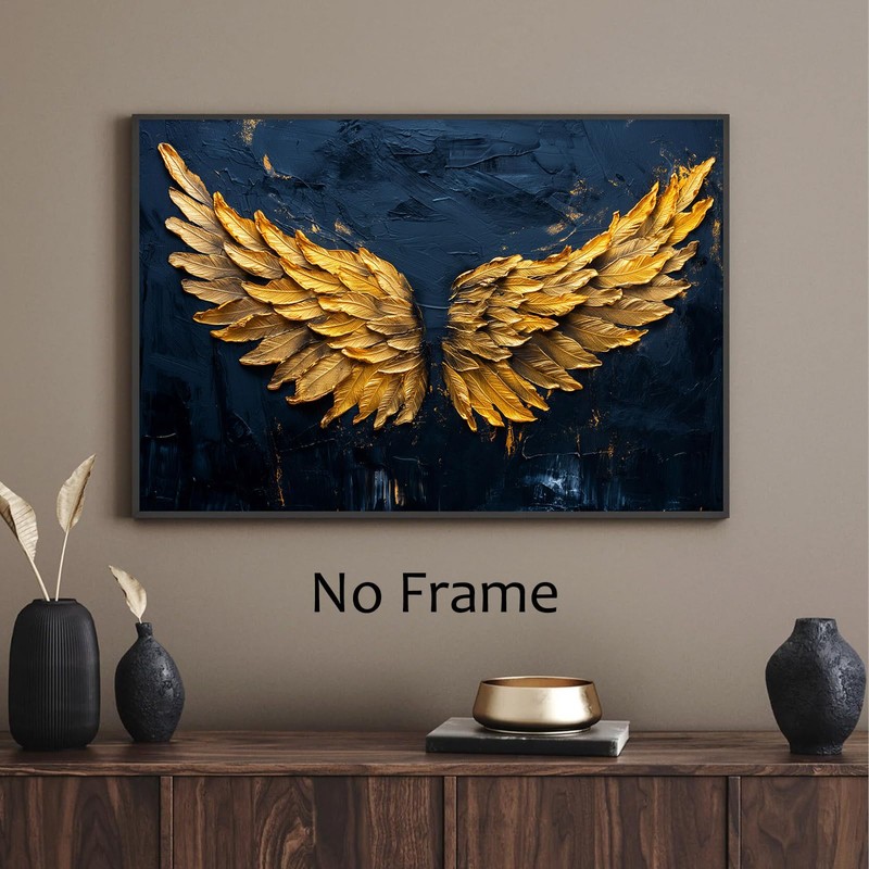 Black and Gold Angel Wings Wall Art Abstract Wing Painting Golden Feather Wall Art Angel Wings Artwork Black and Gold Modern Painting Abstract Modern Artwork 24x16inch No Frame
