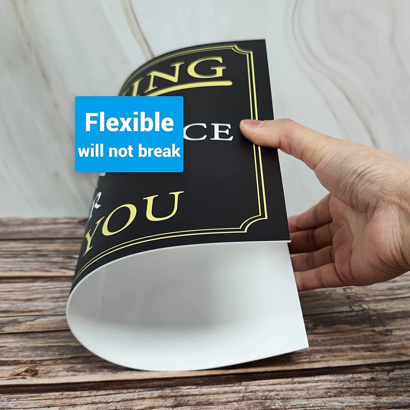 - Our signs are made from a durable, waterproof 1mm PVC material that can withstand tough weather conditions without cracking or breaking.