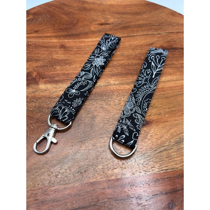 Black and White Fine Line Floral Lanyard - Length: Wristlet, Clasp: Swivel Clasp