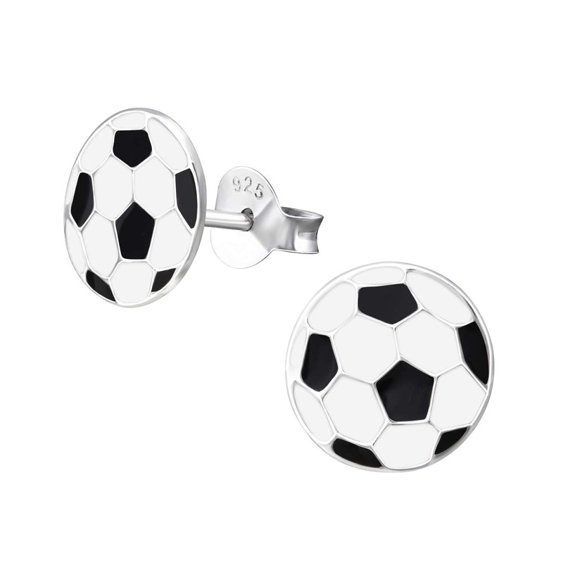 - Fun football stud earrings with enamel finish. Made from hypoallergenic solid sterling silver