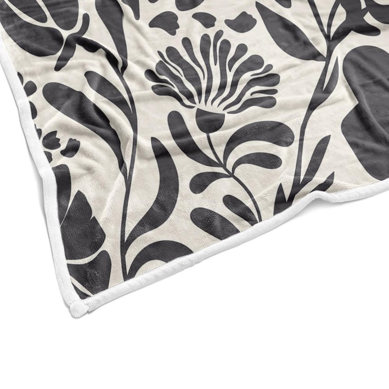 Black and White Retro Floral Blanket, Boho Mid Century Modern Abstract Floral Plants Aesthetic Throw Blanket, Terracotta Cute Cozy Soft Flannel Baby Throw and Blankets Couch Sofa Bed Decor 50"X60"in