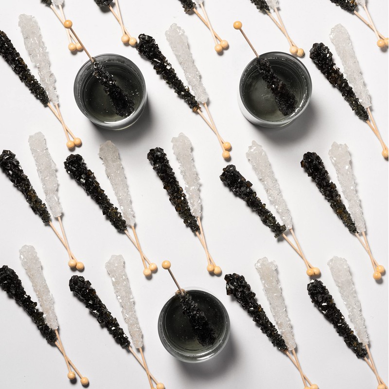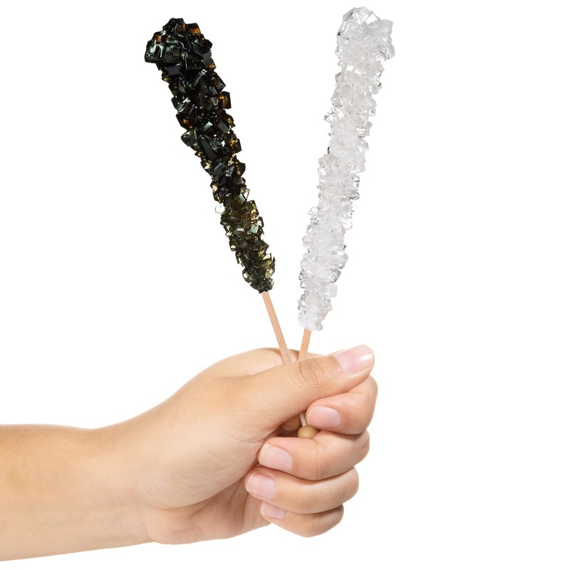 - Bring on the nostalgia with our Best Selling Color Duo of 12 Individually Clear Wrapped Black and White Rock Candy Sugar Sticks!