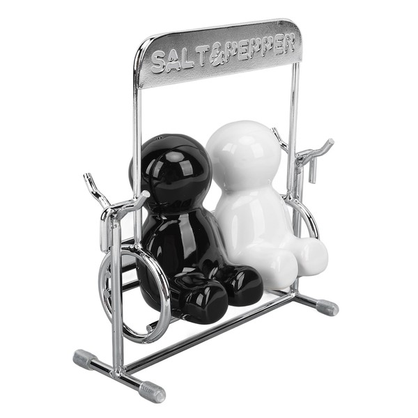 - [Adorable Design] Adorable black and white shaker set featuring swinging people design, for enhancing mealtime enjoyment on dining tables.