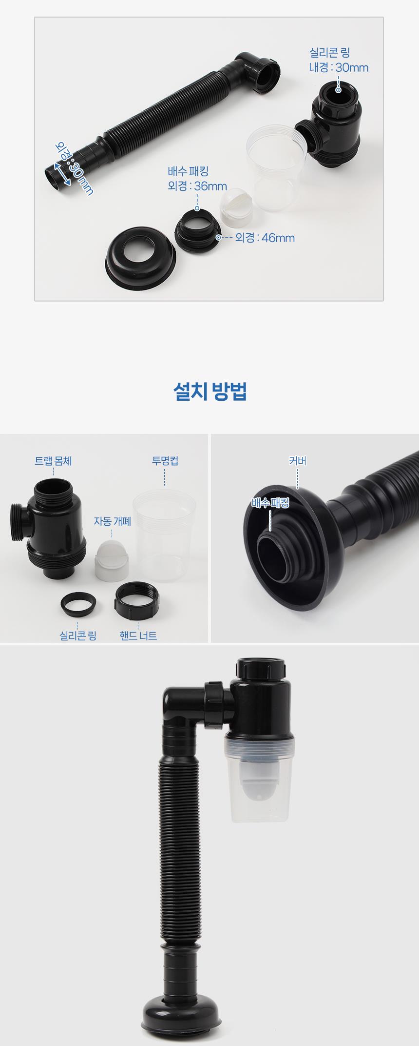 Black Auto-Open/Close Flexible P-Trap Drain Bathroom Accessories