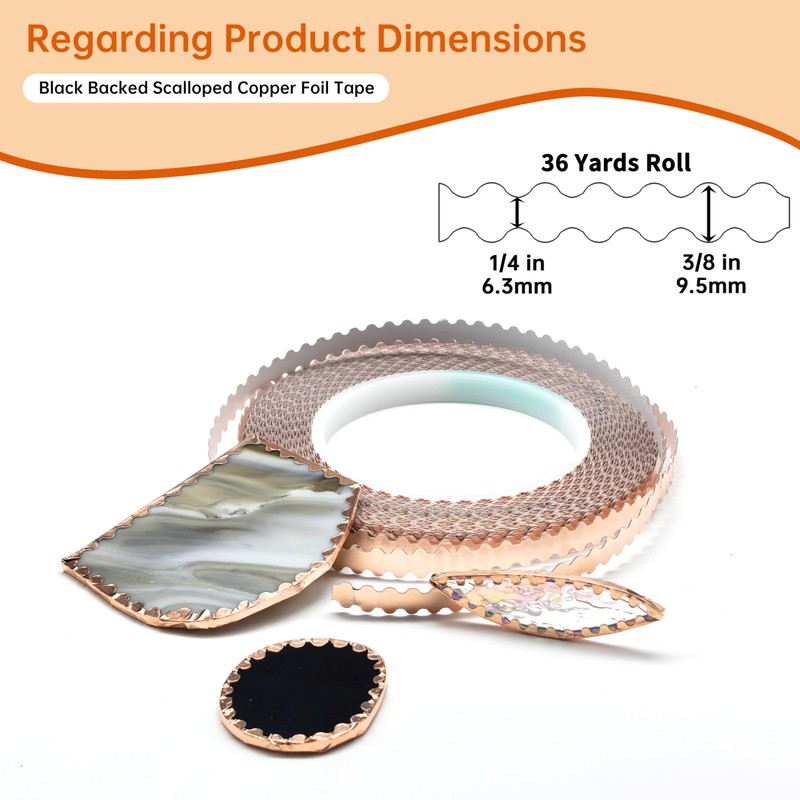 Black Backed Double Edged Scalloped Copper Foil for Stained Glass Project, DIY Crafting (1/4 Double Scalloped)