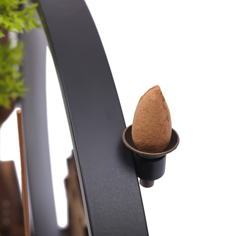 Black Backflow Incense Holder with LED Light, Ceramic Backflow Incense Burner Perfect for Relaxing, Home Decor, Living Room, Study Room, Office