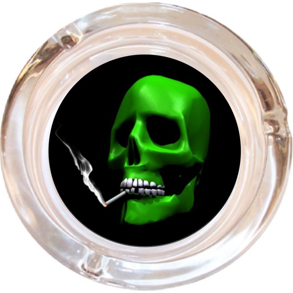 Black Ball Corp. Smoking Skull Glass Ashtray - 4" Round