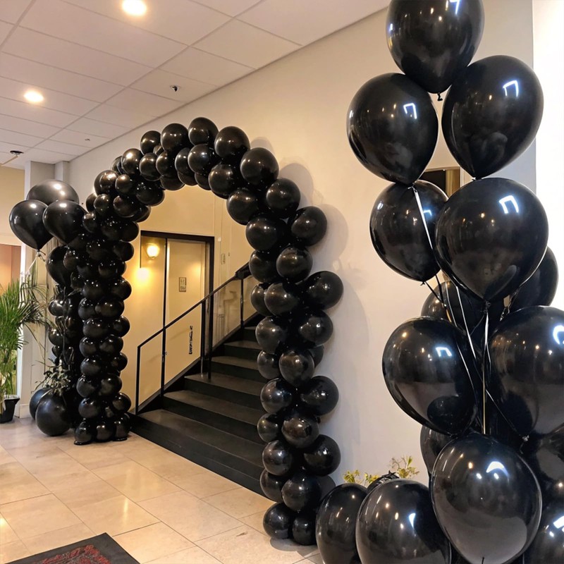 - 【Sufficient Quantity】: Contains whole 50 pieces pure black balloons and 2 balloon ribbon. Whether it's a big party or a small meeting, it can easily meet your decoration needs and create an atmospheric atmosphere.
