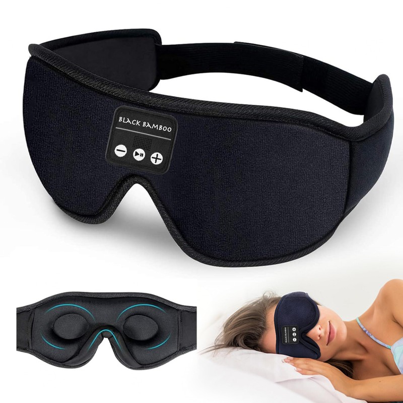 BLACK BAMBOO 3D Sleep MASK with Bluetooth and Eye Therapy Gel Pack