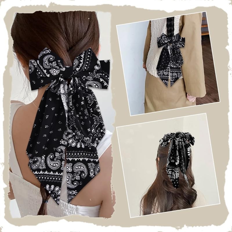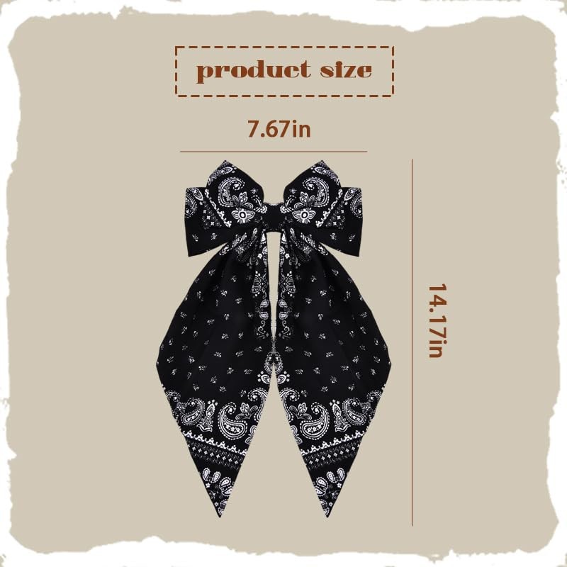 - 5. Perfect for Any Occasion: From festive celebrations to casual outings, this black hair bow clips fits every event, Dress it up for Christmas, Halloween, or Valentine’s Day, or keep it chic for work, dates, or vacations, The black bandana print adds a pop of color, making it a year-round favorite, best boho hair bows, music festival hair accessories for women