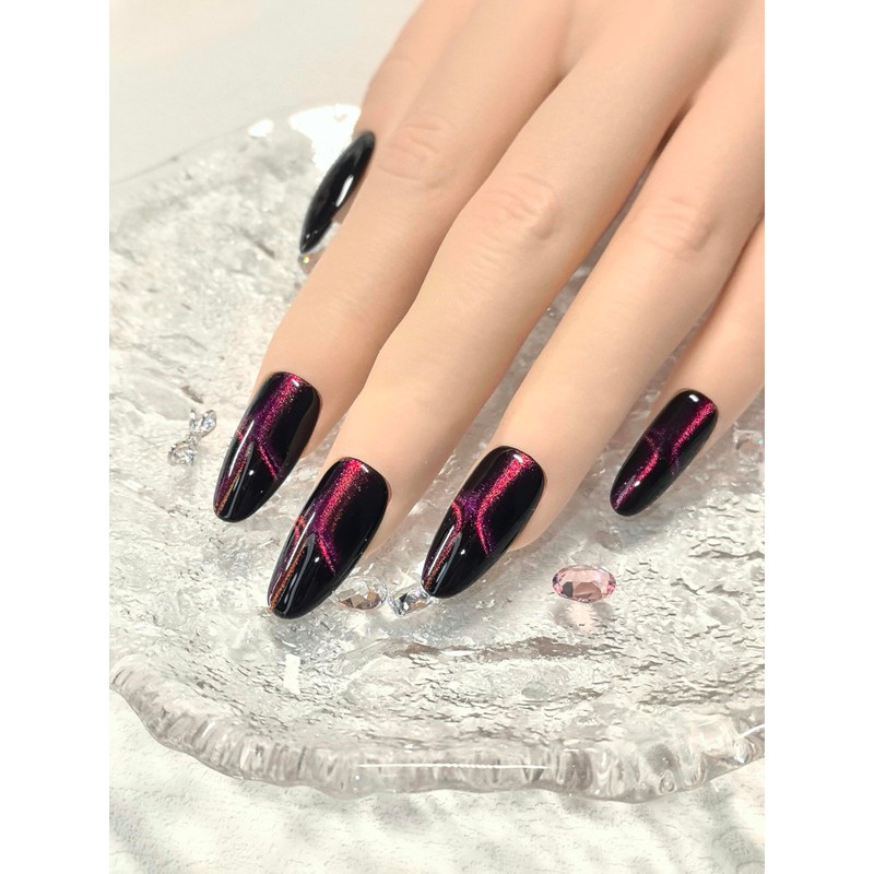 Black Base Pink Dual Cat Eye Press On Nails Mysterious and Cool Girl Trendsetters Vibe. Vacation& Party. High-Intensity Cat Eye Effect, Almond Shape, 10 Pieces (Black& dual cat eye, Small hands)