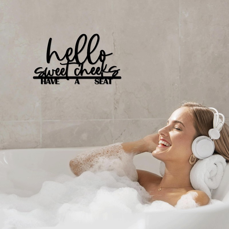 - Exquisite Design: This black bathroom wall decor features a charming and elegant "Hello Sweet Cheeks" sign, adding a touch of farmhouse style to your space. The rustic design complements any farmhouse-themed bathroom.