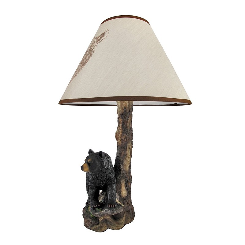 Black Bear and Tree Table Lamp with Shade 20 In.