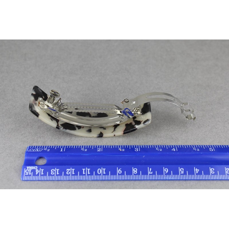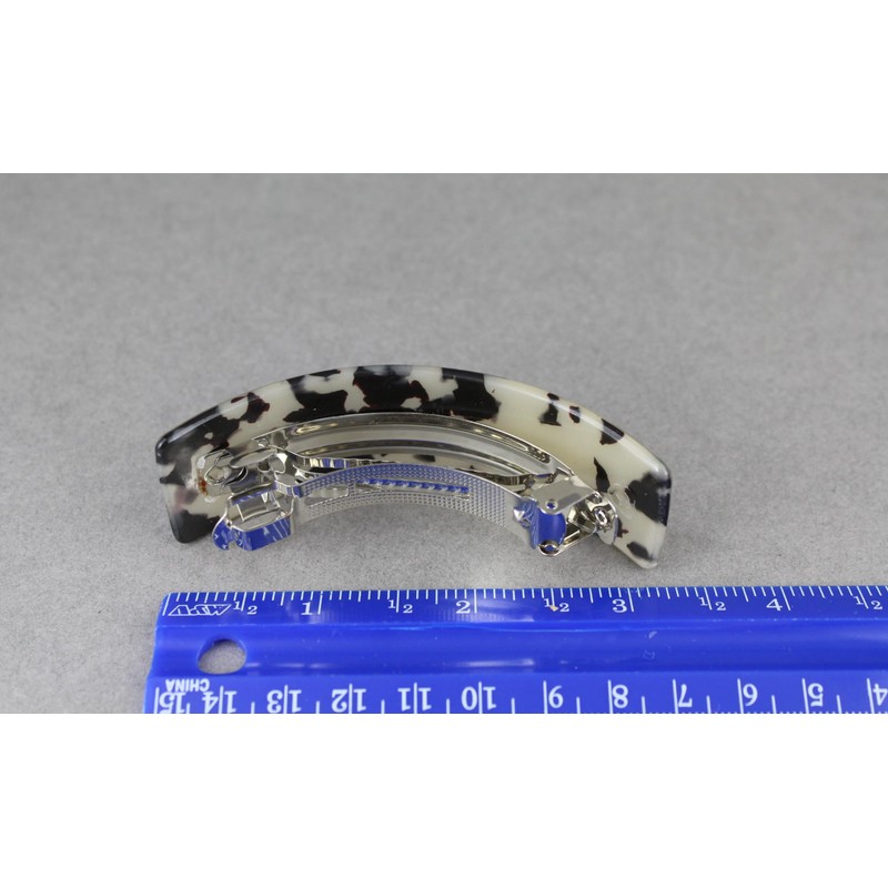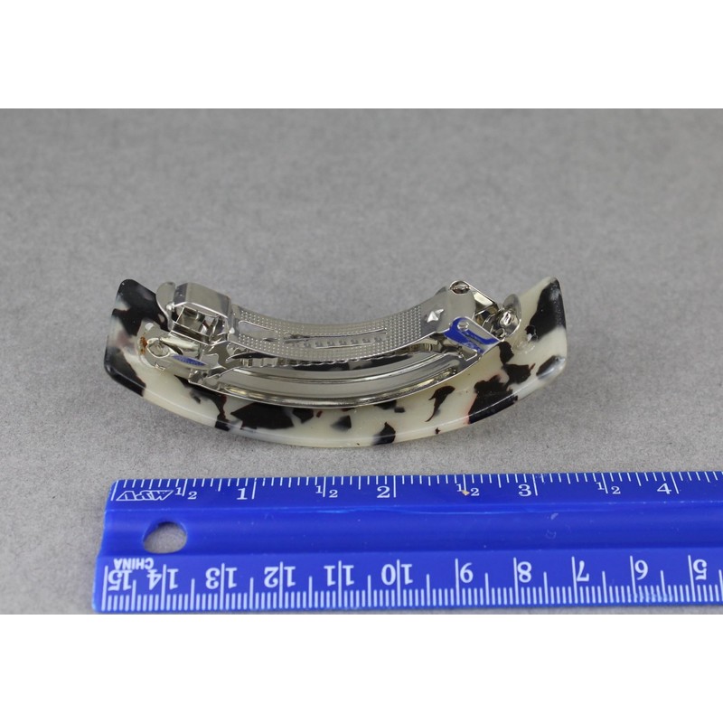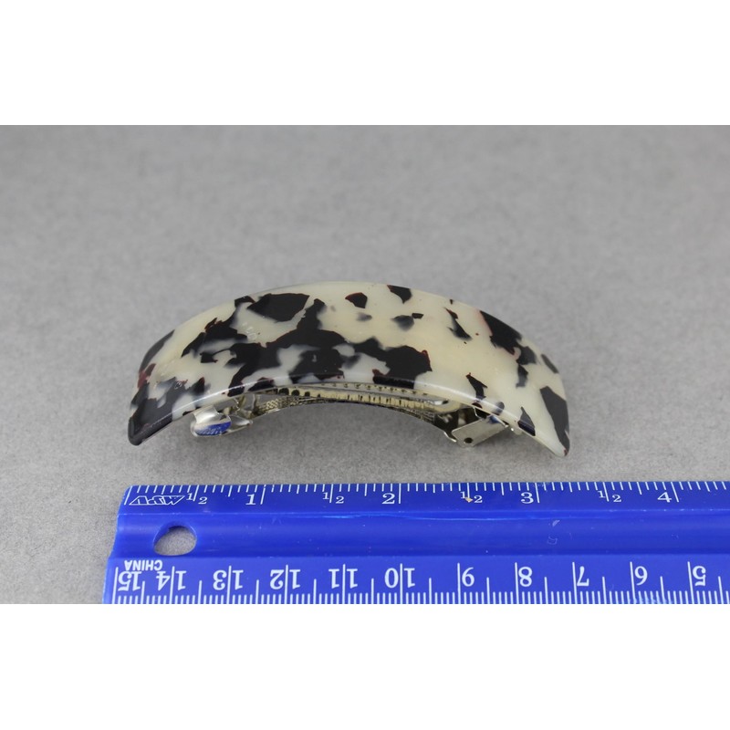 Black Beige barrette plastic marbled rectangle hair clip accessory 3.75 inches long over the corve