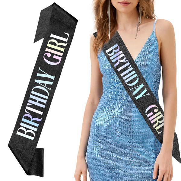 Black Birthday Girl Sash for Women - Birthday Decorations