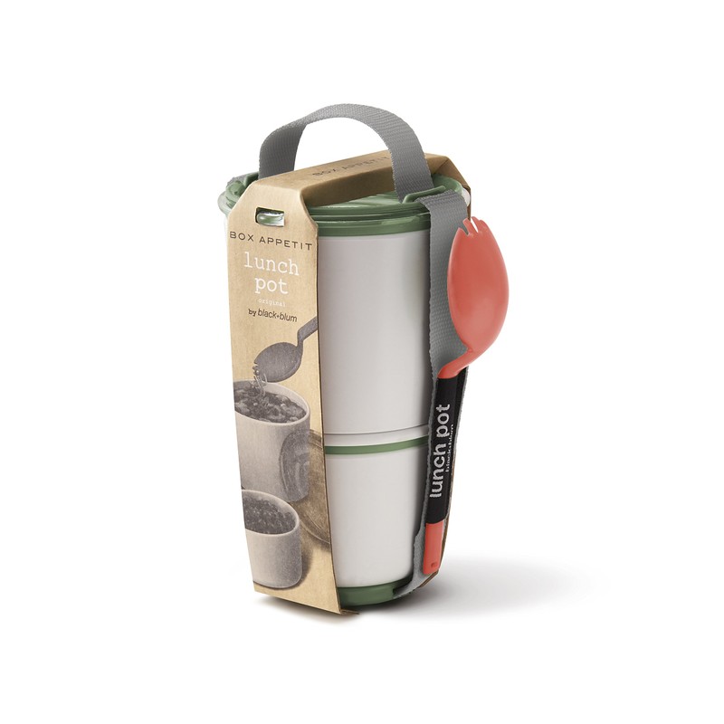 Black+Blum Lunch Pot | High Quality Leak Proof, Round Food Snack Storage Pot, Perfect For Lunch on the Go, 2 x Watertight Stackable Containers With ‘Spork’, Olive